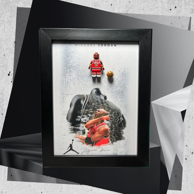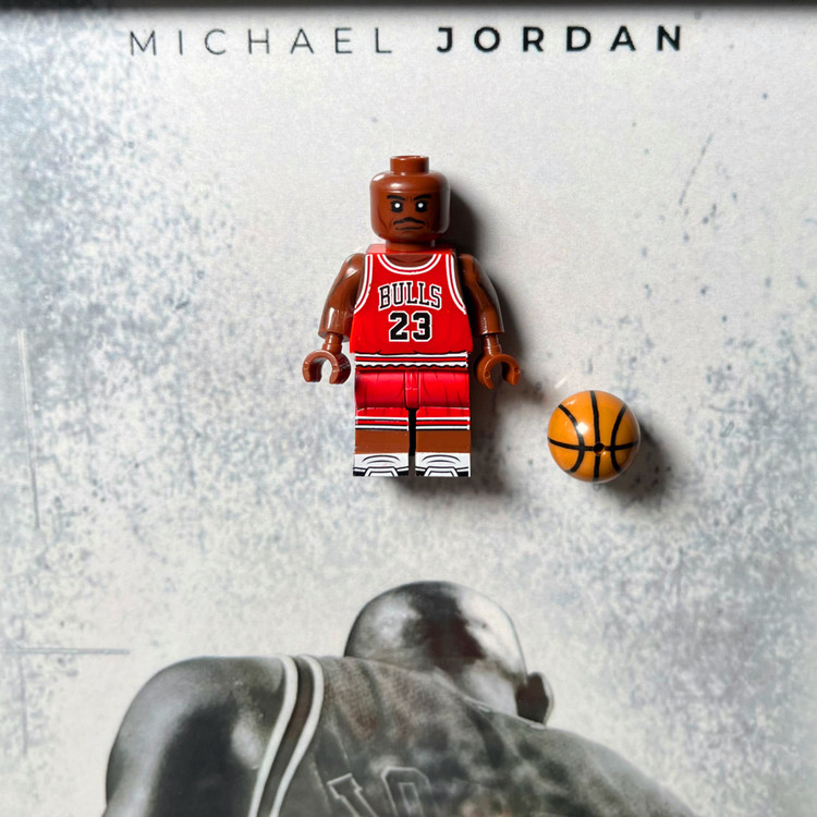 جزئیات دقیق فیگور لگویی، همراه با توپ بسکتبال و تصویر قدرتمند جردن در پسزمینه، همهچیز رو تبدیل کرده به یه اثر کلکسیونی ناب.