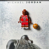 پس زمینه : پوستر اختصاصی با طرح مایکل جردن ، مینیفیگور لگویی مایکل جردن با شماره ۲۳ + توپ بسکتبال لگویی